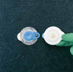 Spezial-Elektrode für Intensiv-Kardiologieund Notfalleinsatz. Mit exzentrischem Druckknopf- Anschluss und 2 Klebezonen: der innere Ring zur Fixierung am Messpunkt und durch microporöse Klebung am Außenrand. Ideal auch bei feuchter Umgebung, 68 mm Ø.