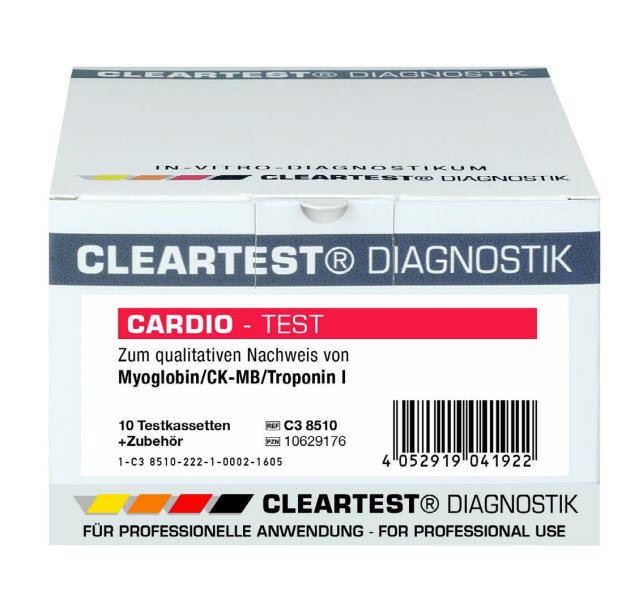 Der CLEARTEST Cardio spielt mit seinen 3 Herzmarkern Myoglobin, CK-MB und Troponin I in der Differenzialdiagnostik, wie auch in der Verlaufs- und Therapiekontrolle eine große Rolle.