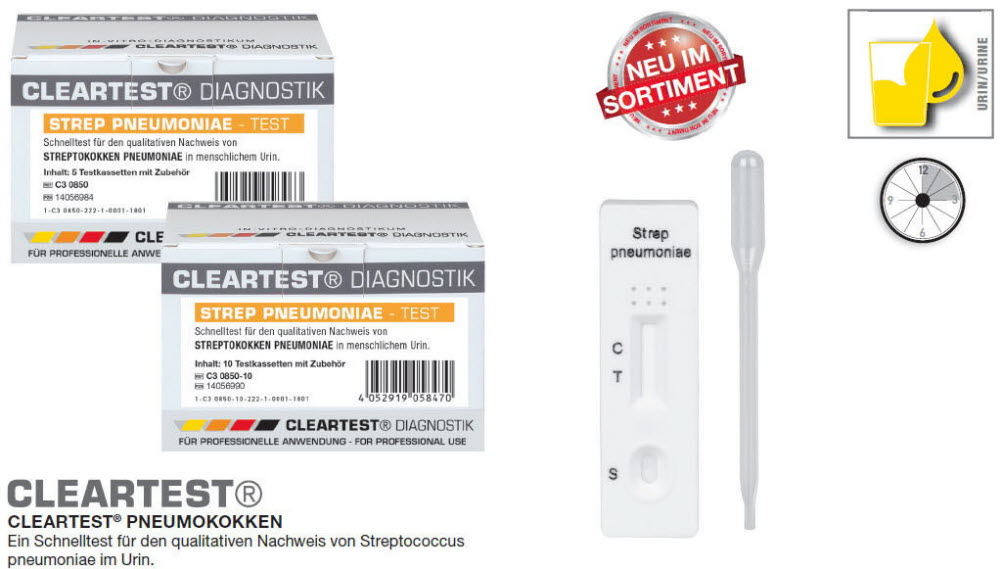 Da die Pneumokokken rasch absterben, ist es als Primärdiagnostik sinnvoll den CLEARTEST® Pneumokokken durchzuführen, vor allem, um ein wirksames Antibiotikum zur Bekämpfung auswählen zu können.